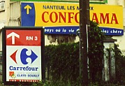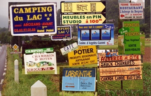 Interdites parce que comportant une indication de localité complétée soit d'une flêche, soit par une distance kilométrique.