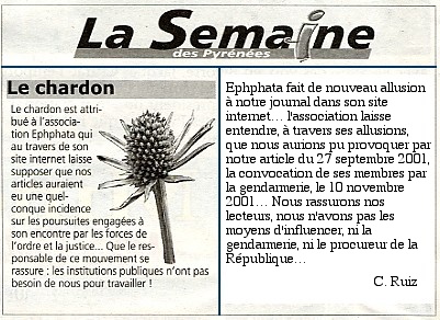 du dossier "Ephphata" par la gendarmerie de Lourdes.
