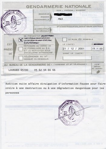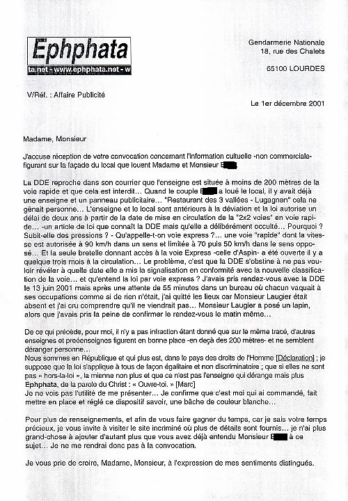 Je vous prie de croire, Madame, Monsieur le gendarme, à