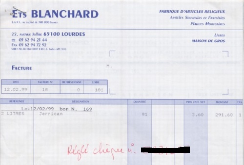 l'association diocésaine. Total : 38,26 FF. Le bidon