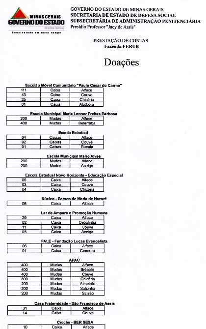 Il est bon de préciser ici, que l'État du Minas Gerais est un exemple au Brésil, presque une exception ; que tous les États brésiliens ne font pas le même effort et ne sont pas aussi sensibles au devoir de réinsertion de gens qui ont fait une faute, mais il commence à être un exemple suivi par d'autres États brésiliens et c'est bien !…